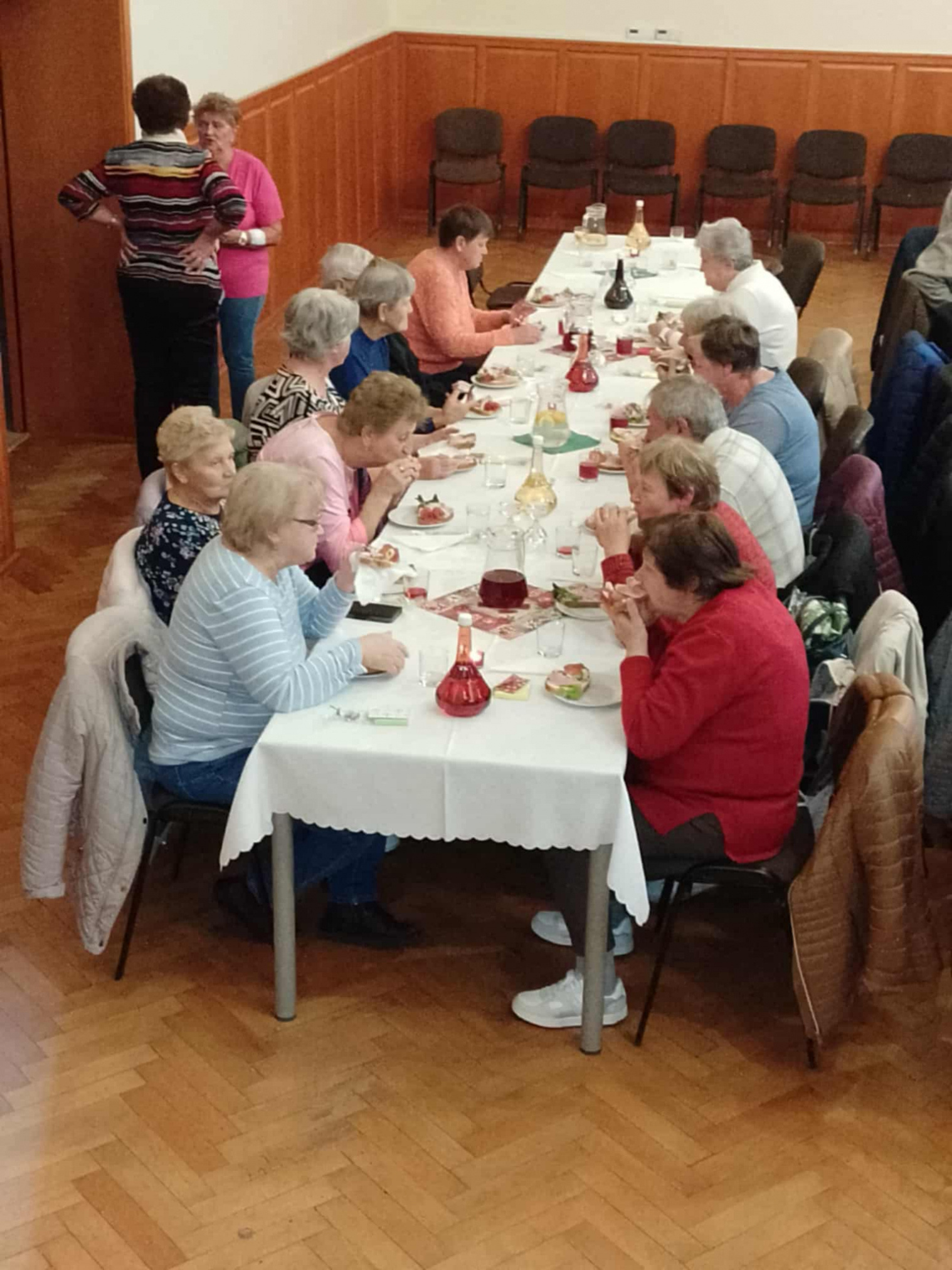 V stredu 22.októbra 2025 sme v Kultúrnom dome v Krškanoch opäť privítali našich rodičov, starých rodičov, babky, dedkov, tým, ktorým je venovaný Október - Mesiac úcty k starším. Všetci, ktorí prijali pozvanie, sa mohli potešiť vystúpením našich najmenších z materskej školy. Tí, napriek ich malému vzrastu, vyčarili veľký úsmev, zapálili iskru v oku a pohladili vráskavú dušu. Zároveň ich srdce roztancovala tanečná skupina SRDCE! Seniori zo združenia Jednoty dôchodcov v Leviciach, ktorí svoju energiu, čas a chuť menia na tanec, ponúkli svojim rovesníkom návod, ako sa aj jeseň života dá prežiť s nadšením, elánom a tanečným krokom zahnať starosti. Báseň o starobe, ktorá mladne - prostredníctvom Márie Máčayovej - povzbudila a poéziu života priniesla Mária Cibulová. Chutné občerstvenie, pohárik dobrého vínka a sladká bodka na záver spríjemnili už aj tak bohatý jesenný večer.